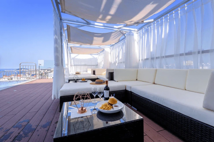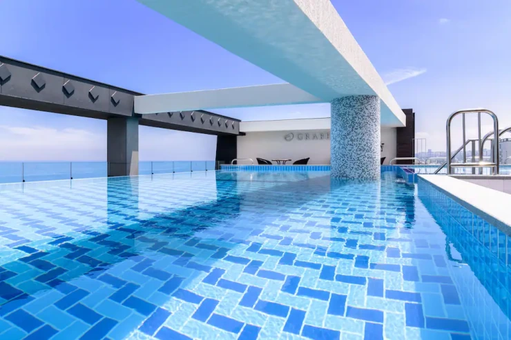 루프탑 수영장은 메인 인피니티 풀과 키즈풀, 카바나, 썬베드, 스낵 코너로 구성됐다. 연중무휴로 운영되며, 오전 11시부터 밤 10시까지 문을 열린다. 성수기에는 밤 11시까지 이용 가능하니 수영복 꼭 가져오도록 하자!