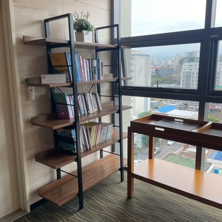 따뜻한 제주 햇빛과 함께, 책 한 권의 여유를 즐겨 보면 어떨까? 제주 그라벨호텔 각층에는 대여와 반납이 자유로운 자율 도서관이 마련돼 있다. 승강기 앞쪽이라 찾기 어렵지 않다. 언제든 편하실 때 방문해 보자.