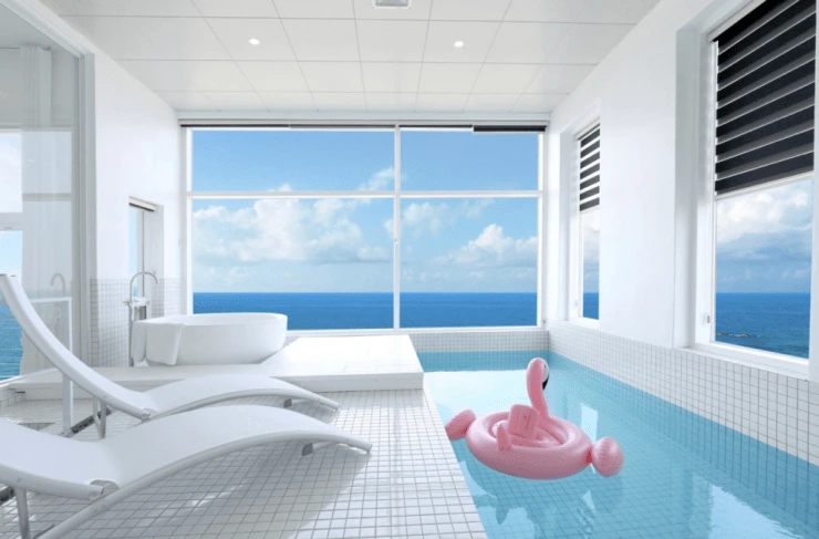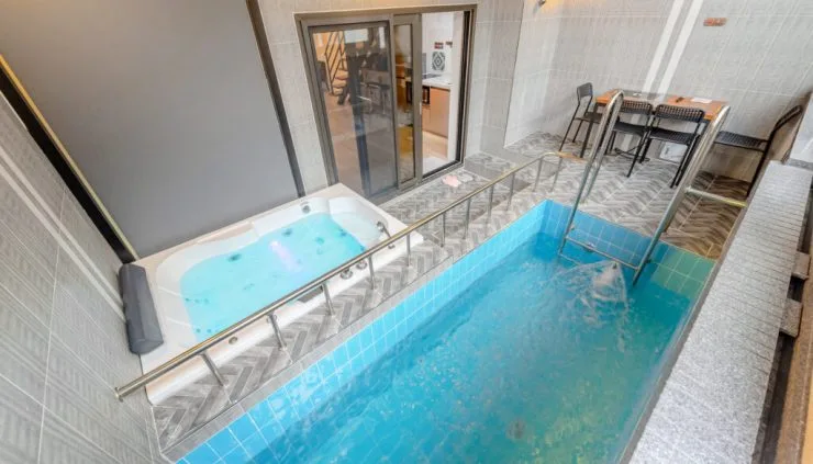 101~104호와 201호~203호 등 총 7개 객실을 보유했다. 이중 202호는 반려견 동반이 가능하다. 실내 풀빌라로 구성된 객실에는 아이들과 물놀이하기 딱 좋은 크기의 수영장과 스파를 갖췄다. 아울러, 전 객실에 개별 바비큐장이 마련돼 있다. 원적외선 전기 그릴을 사용해 안전하게 바비큐 파티를 즐겨 볼 수 있다.