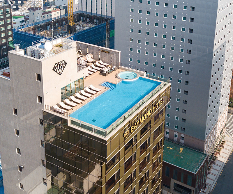베이몬드의 시그니처 스팟을 꼽으라면 단연 루프탑 풀이 아닐까 싶다. 눈앞에는 해운대 바다가 펼쳐져 있고, 하늘은 손만 뻗으면 닿을 듯해 초여름 더위를 잊어버리기 딱 좋은 곳이라 사진도 잘 나온다. 특히 사계절 온수로 저녁 10시까지 운영되니 낭만적인 밤 수영도 꼭 이용해 보자~ 그 외 부대시설로는 레스토랑과 셀프 세탁실 등이 갖추어져 있다.