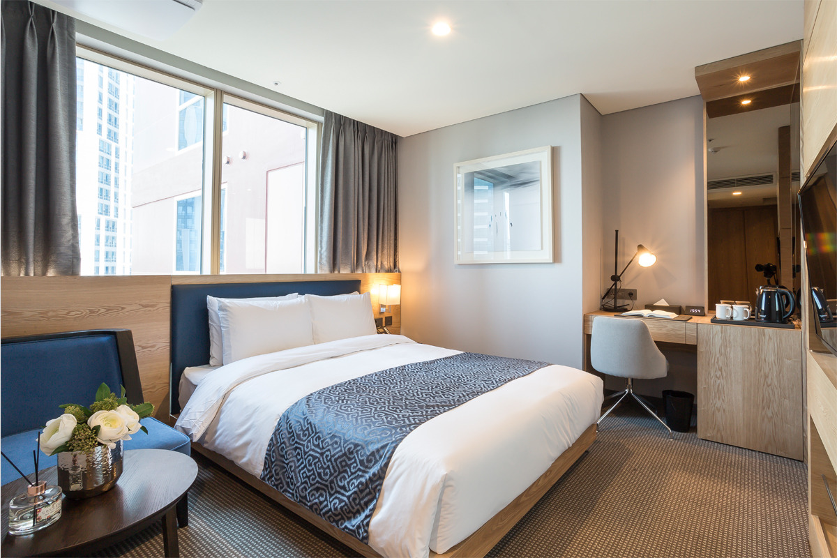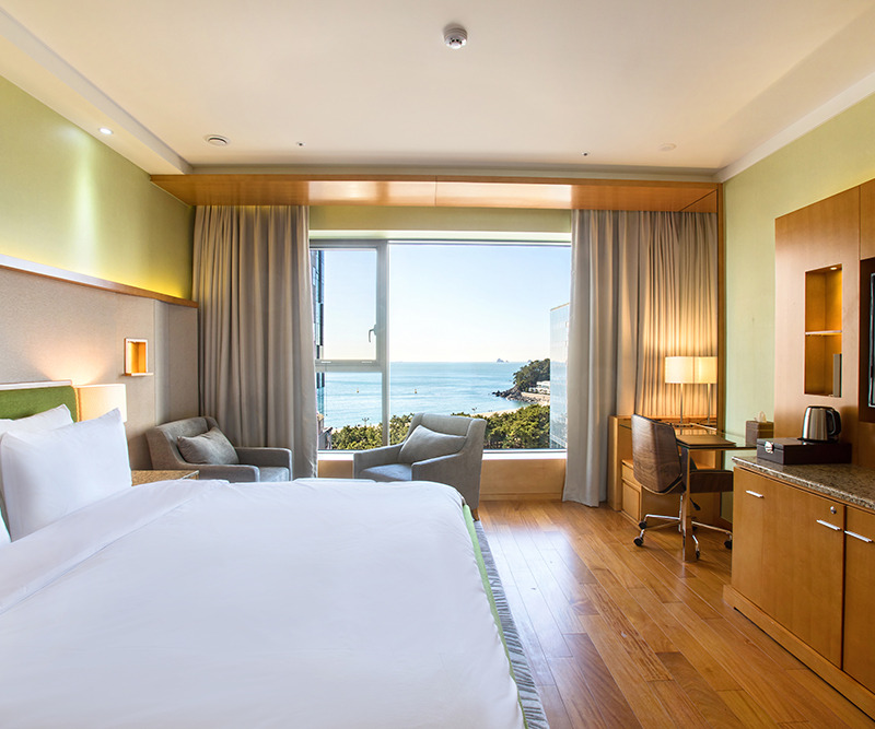 객실은 스탠다드, 디럭스, 프리미어 디럭스, 스위트까지 총 4가지 타입으로 구분되며 총 407개를 보유하고 있다. 호불호 없는 모던한 인테리어와 고층 객실에서는 탁 트인 오션뷰까지 누릴 수 있다.