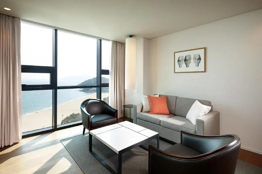 객실에서 오션뷰도 즐길 수 있다. 해운대 해수욕장과 매우 가까워 훌륭한 뷰를 자랑한다. 통창 가득 시원한 바다 전망을 마음껏 누려보자.