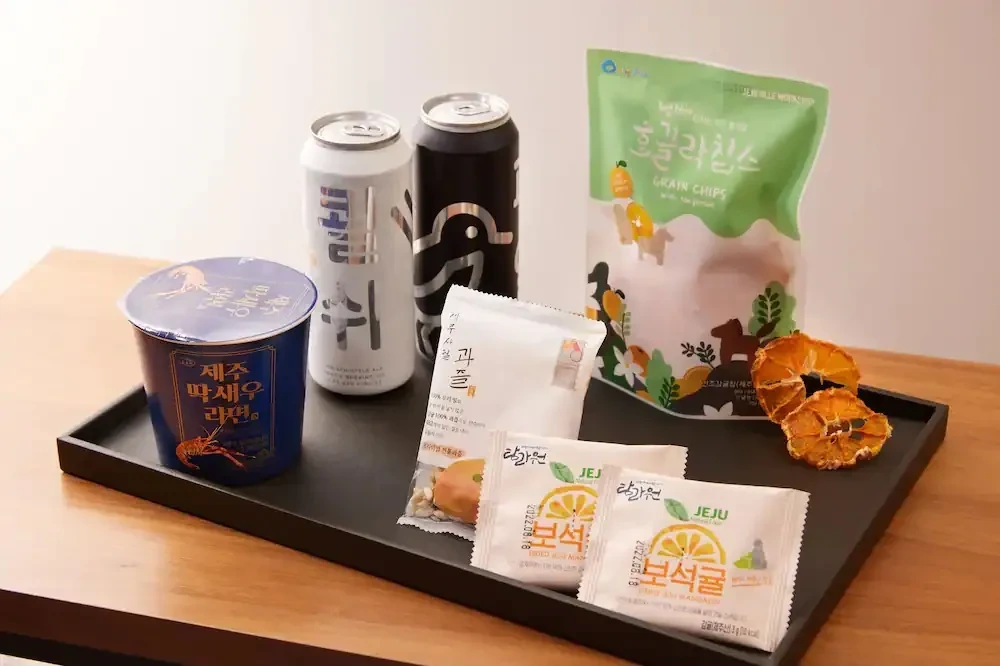 제주는 객실에 따라 시티뷰, 오션뷰, 한라산뷰까지 다양한 전망을 감상할 수 있다. 에디터의 픽은 프리미어 디럭스룸! 신라스테이에서는 프리미어 디럭스룸 이용 시 미니바가 무료로 제공된다. 제주점에서는 특별히 제주의 맛과 감성을 담은 아이템을 만날 수 있어요. 수제 맥주와 특산물 스낵, 컵라면 등 이색 굿즈를 겟할 수 있다.