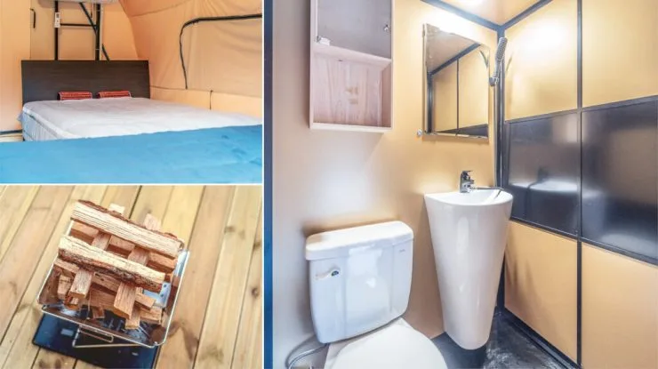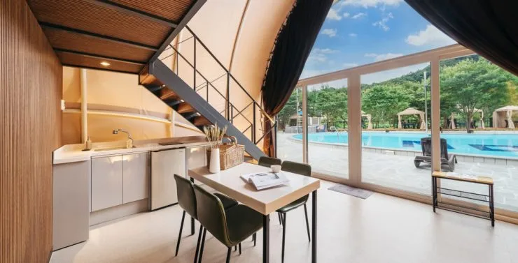 어메니티로는 수건과 샴푸, 린스, 바디샤워, 샤워타올이 제공된다. 호텔식 침구류를 갖추고 있어 편안한 하루를 보낼 수 있다. 글램핑장 앞은 계곡이 흐르고 있어 자연 속에 들어와 있는 듯한 느낌을 풍긴다. 부대시설로는 사계절 미온수로 이루어진 야외수영장을 이용할 수 있다. 아이들을 위한 키즈 놀이공간도 마련되어 있다. 캠핑장 주변에는 산책로가 있어 걷기에도 좋다.