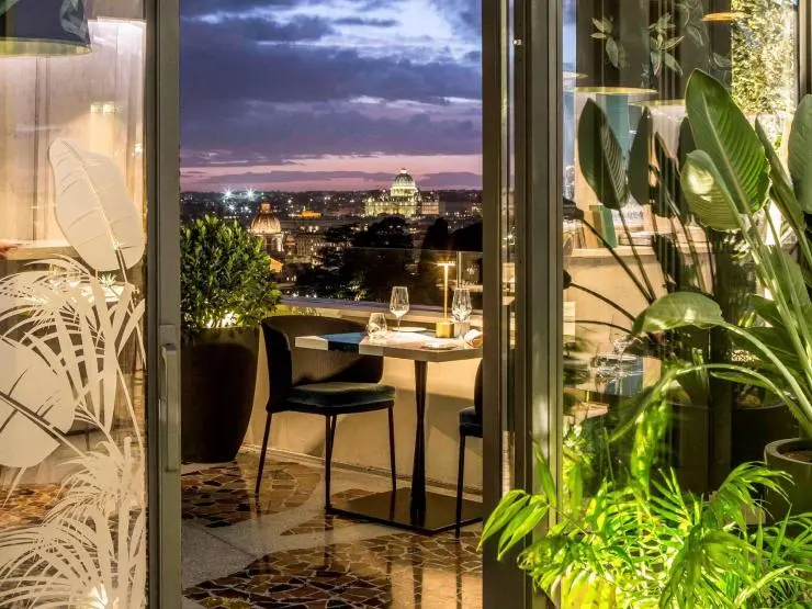 소피텔 로마 빌라 보르게세 호텔 루프탑에 위치한 레스토랑에선 로마의 시티뷰와 함께 특선 요리를 즐길 수 있다. 외곽에 위치한 별장 분위기와 함께 럭셔리 호텔 시설과 서비스를 즐길 수 있다는 점이 매력적이다.