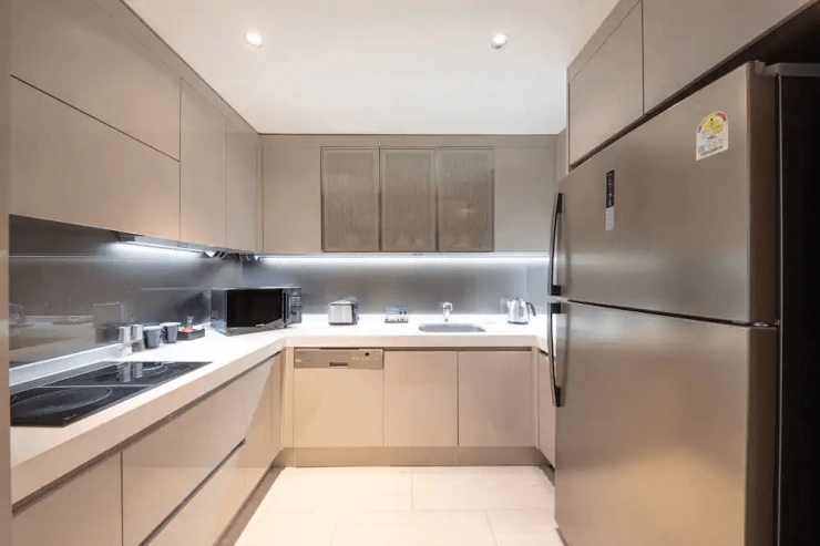 객실 주방에는 할로겐 인덕션 레인지와 팬후드 시스템, 냉장고, 전자레인지, 전기 밥솥, 전기 주전자, 토스터, 식기 세척기, 조리 도구 및 식기류 등을 완비했다. 호텔이 롯데마트 지하주차장과 연결돼 있어, 생필품 배달이 가능하다.