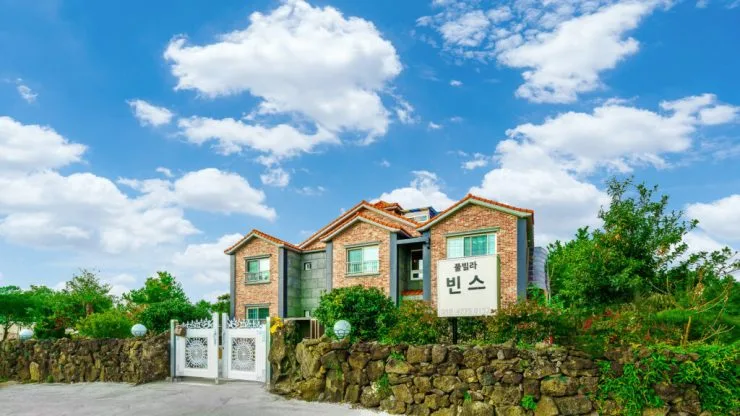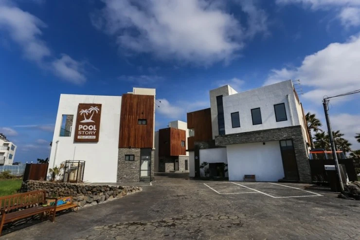 야자수와 야외 수영장을 보고 있자면 제주도가 아닌 해외에 온듯한 기분을 주는 펜션이다. 실내 인테리어는 대리석 바닥으로 고급스러우면서도 세련된 가구로 전반적으로 깔끔한 느낌이다. 프라이빗하게 개별동으로 이루어져 있어서 가족끼리 편하게 쉴 수 있다.