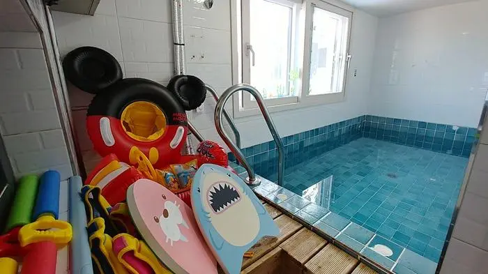 2020년에 지은 신축 풀빌라로 객실 컨디션도 좋은데 아이랑 함께 놀기 좋은 놀이시설이 있어 더 좋은 숙소다. 독채로 있어 프라이빗하게 쉴 수 있고 전 객실에 수영장이 있어서 가족끼리 오붓하게 놀 수 있다. 튜브, 구명조끼 등도 제공된다. 간단하게 조리 가능한 조리기구, 세탁기, 건조기, 소독기, 전자레인지 등도 있고 아이들 놀이기구인 주방도 있다.