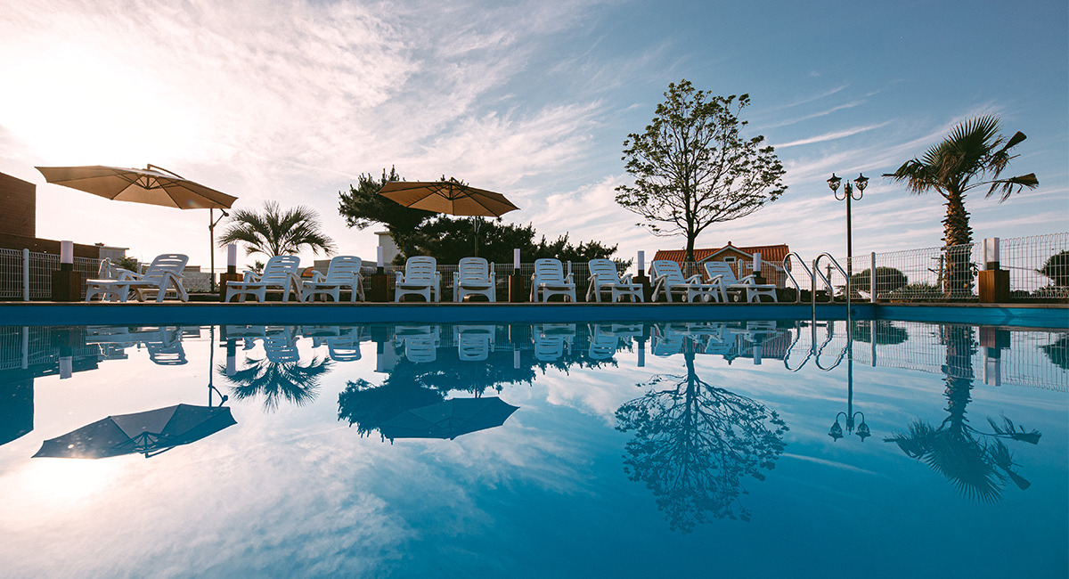 1층 야외에는 함덕 해변과 따사로운 햇살을 맞으며 수영을 즐길 수 있는 큼직한 공용 수영장이 준비되어 있다.
