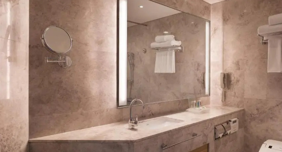 홀리데이 인 인천송도 객실 내에는 Dove(도브) 다회용 제품을 어메니티로 제공하고 있다. 그밖에도 바디로션, 일회용 칫솔/치약, 헤어 드라이기 등등 기본적인 어메니티가 알차게 구비되어 있다.