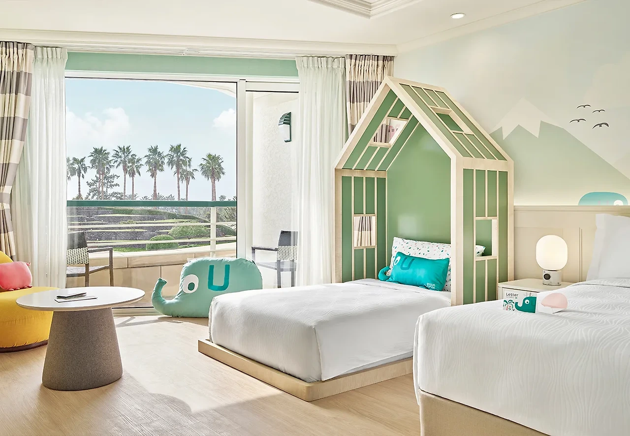 그랜드 조선 제주는 메인 빌딩과 힐 스위트 빌딩 2개동으로 나누어져 있다. 메인 빌딩은 디럭스와 다양한 스위트 타입의 객실이 준비돼 있다. 아기자기한 키즈 테마 객실은 키캉스를 즐기기 딱이다. 전 객실 발코니를 보유하고 있어 제주의 풍경을 좀 더 생생히 느낄 수 있다. 일부 스위트 객실에는 프라이빗 히노끼탕도 있다. 마운틴 뷰와 함께 중문 숙소에서 여유로운 시간을 가져보자.