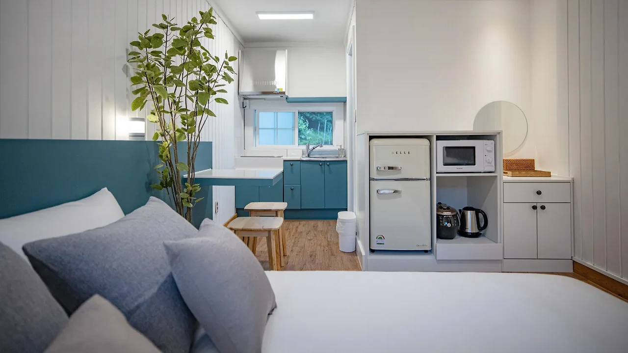 그곳에가면 펜션은 강원도 홍천에 위치한 계곡 펜션이다. 모던한 스타일의 객실 인테리어를 보유하고 있는데, 객실은 1층과 2층으로 나누어져 있다. 객실 내 통유리창 너머 보이는 자연 풍경이 인상적이다. 객실은 원룸형으로 침실과 주방, 화장실을 갖추고 있다.