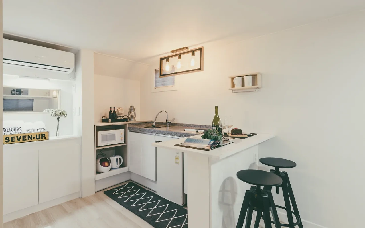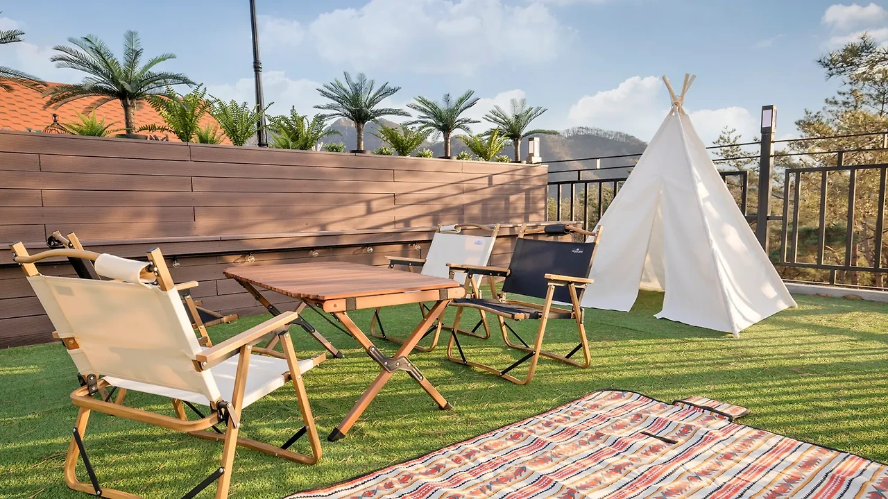제천시 수산면에 자리한 감성 숙소로 화이트 바탕에 우드로 포인트를 준 외관은 럭셔리 동남아 리조트를 떠올리게 한다. 소나무 숲에 둘러싸인 펜션에서는 맑은 공기와 함께 특별한 전망을 만날 수 있다. 테라스 의자에 앉아, 주변을 보기만 해도 힐링이 된다. 공용 카페 셀프 바에서 차 한 잔의 여유도 즐겨 보자.