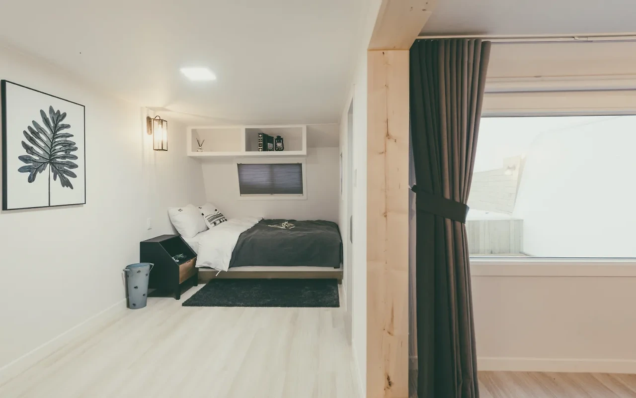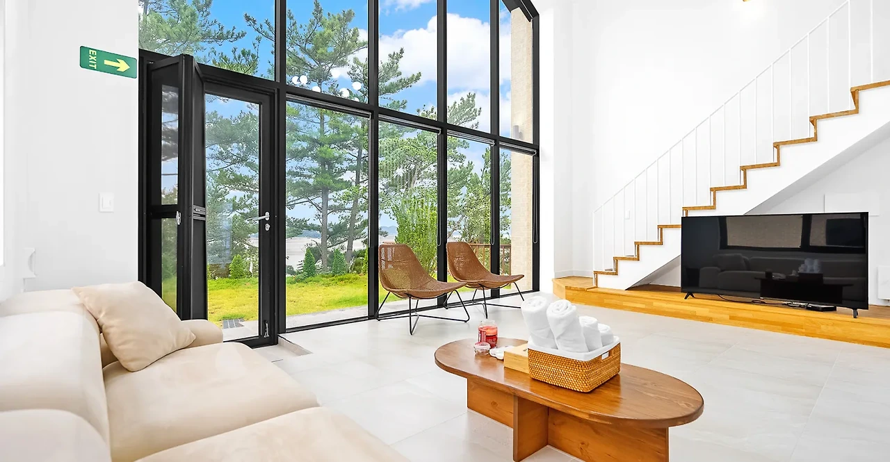 펜션은 총 6개 독채 객실을 보유했다. 굳이 다른 여행자와 마주할 일 없이, 프라이빗한 시간을 보내 보자. 여행의 불편함을 느끼지 않도록 마샬 스피커와 공기 청정기, 캡슐 커피 머신 등을 완비해 놨다. A동을 예로 살펴보면, 1층은 개별 수영장과 주방, 거실, 화장실, 2층은 침실과 화장실로 구성됐다. 최대 6명까지 투숙 가능하다.