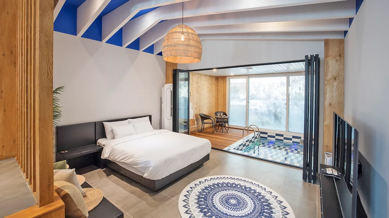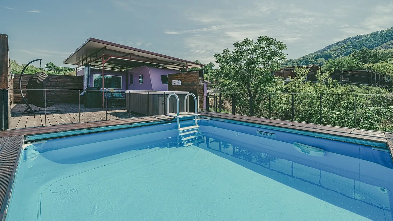 객실은 크게 풀빌라와 스파, 패밀리형으로 나뉜다. 대표 객실로 풀빌라 3호를 살펴보면, 호텔형 카라반 형태의 넉넉한 투룸 구조로 개별 수영장과 제트 스파를 갖춰 놨고, 전용 데크에서는 바비큐를 이용할 수 있다. 또한, 객실에는 빔 프로젝터를 설치해 놨다. 나만의 작은 영화관을 만나 보자!