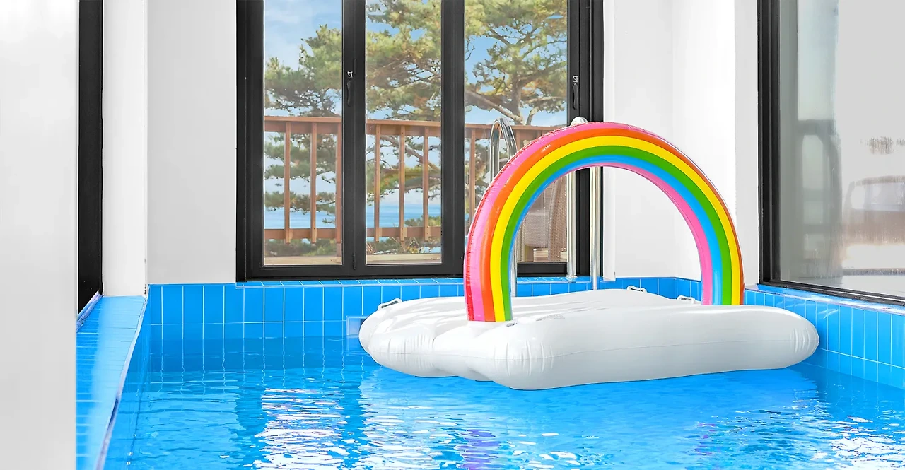 객실은 총 일곱 가지 타입으로 구성됐다. 모든 객실에 월풀 스파를 설치해 놨다. 일상과 여행에서 쌓인 피로를 사르륵 녹여 보자. 일부 객실에는 알록달록한 컬러와 캐릭터로 꾸며진 개별 수영장을 갖췄다. 미온수로 운영돼, 아이들 놀기에 딱이다. 한편, 펜션 카페에서 보드 게임도 대여 가능하다.