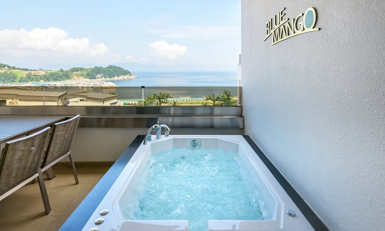 여수 블루망고 풀빌라에서는 럭셔리한 힐링을 즐길 수 있다. 동남아 고급 리조트에 온 듯 이국적인 분위기와 멋진 오션뷰! 바다가 바로 앞이라 피서지로 딱이다. 편의시설도 잘 갖춰져 있어 프라이빗한 호캉스가 가능하다.
