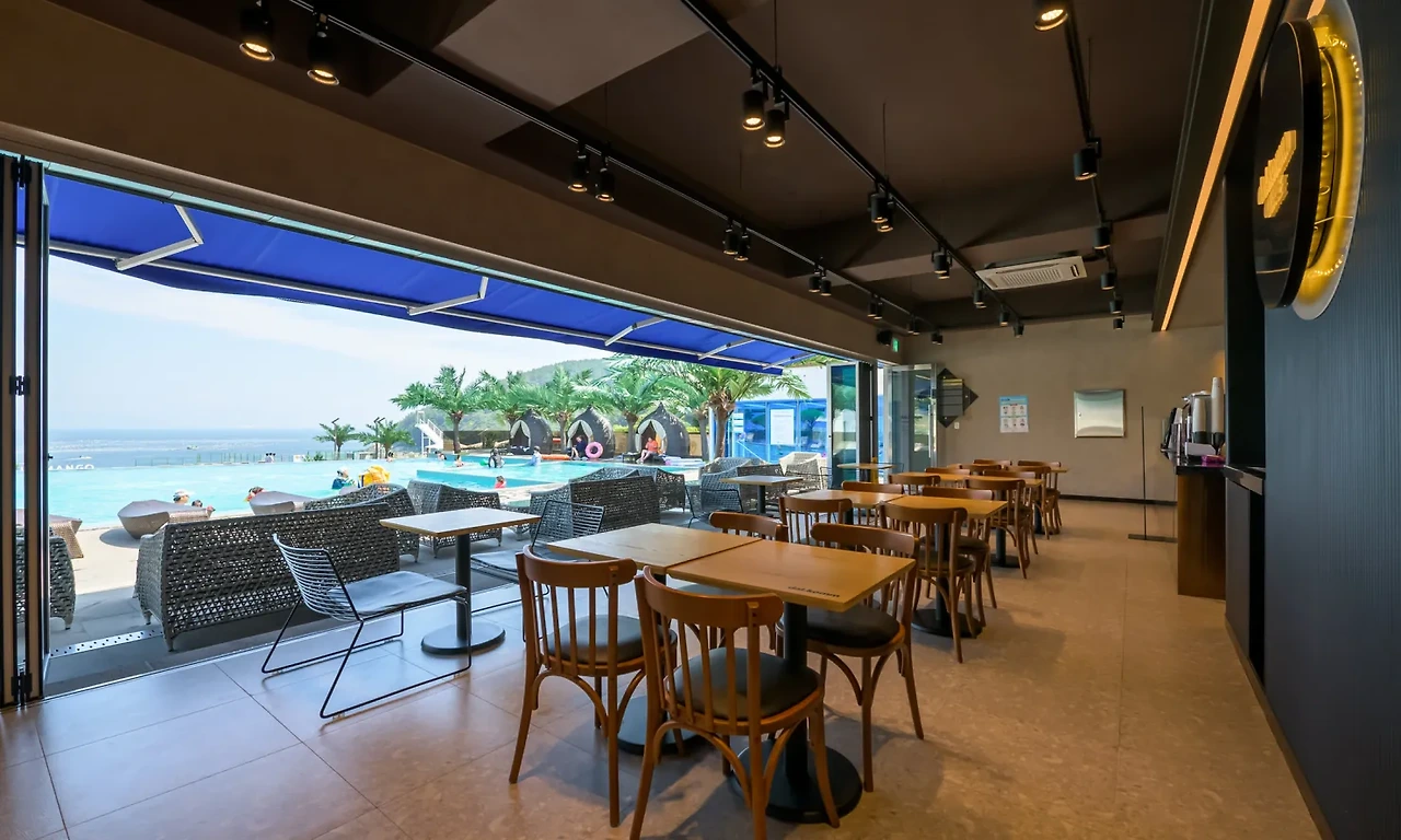리조트 내에는 수영장과 바다 전망의 카페도 운영 중이다. 커피를 포함한 다양한 음료, 디저트를 판매하고 있다. 사진도 잘 나오는 비밀 스팟이다.