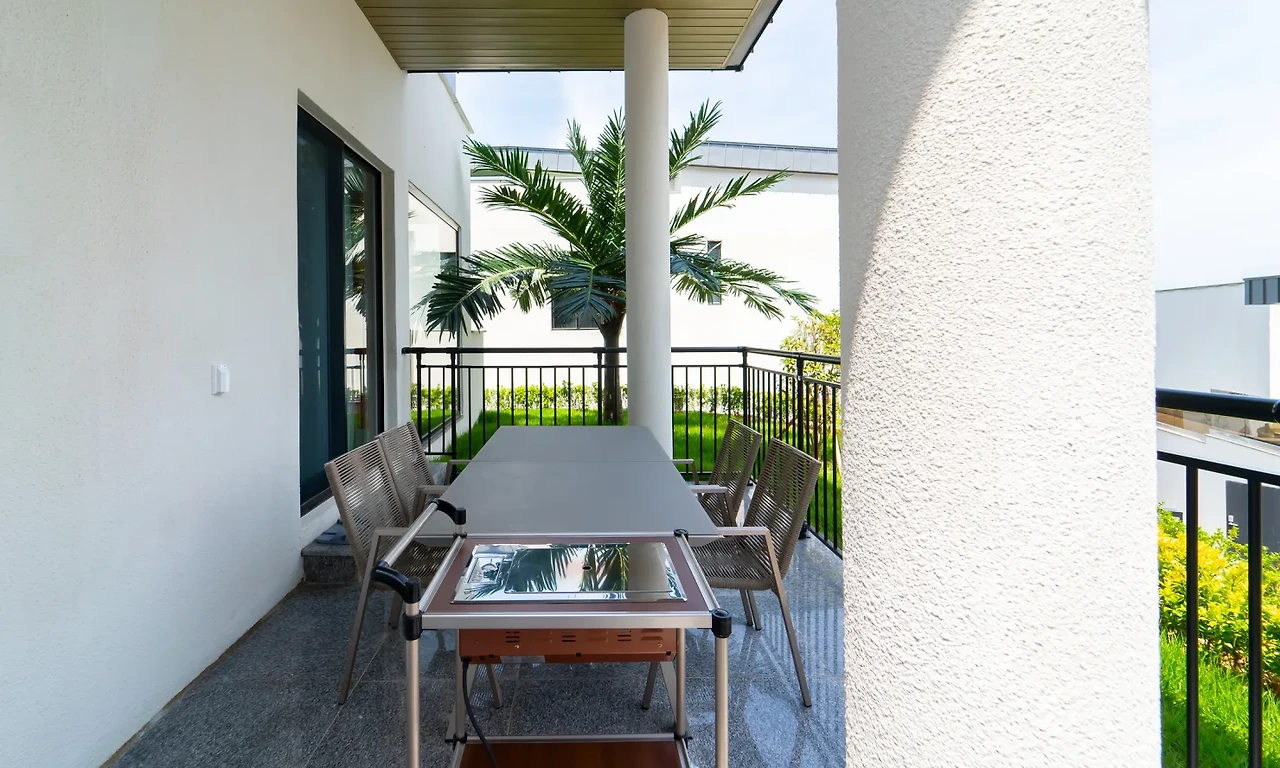 여수 풀빌라는 객실 테라스에서 개별 바비큐도 가능하다. 전기 그릴로 화재 위험 없이 안전한 식사가 가능하다. 바비큐 세트도 판매하고 있어 몸만 가도 된다!