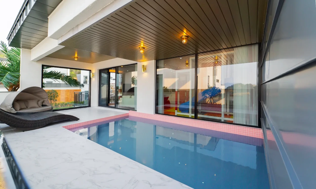 블루망고 풀빌라의 하이라이트는 뭐니 뭐니 해도 수영장이죠! 초대형 2단 인피니티 풀과 메인풀까지. 규모가 매우 크기 때문에 여유롭게 물놀이를 즐길 수 있다. 따뜻한 미온수로 이른 물놀이도 가능하다. 사우나도 있으니 살짝 춥다면 이용해 보자.