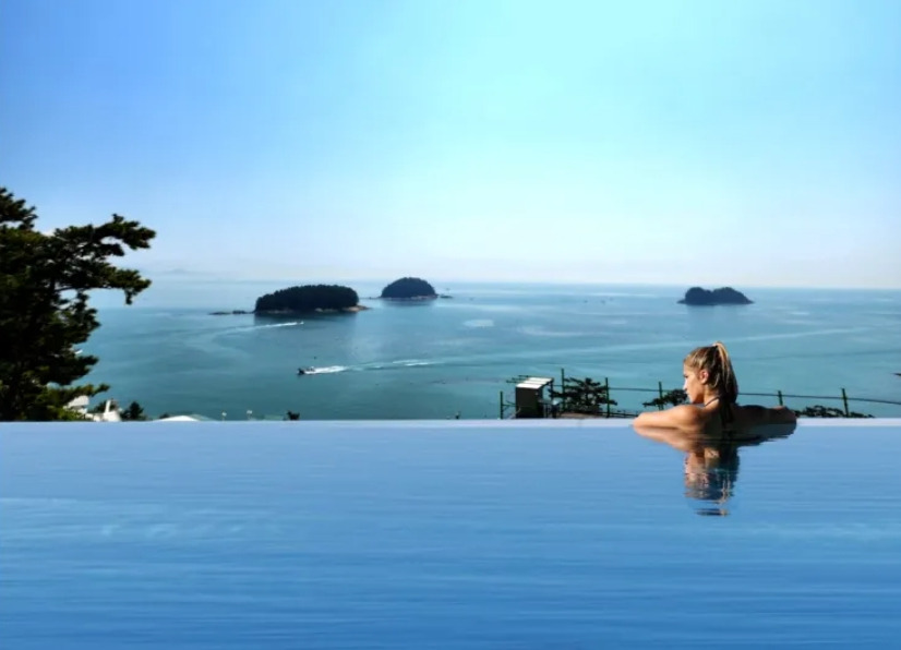 여수 예술랜드 리조트에는 투숙객만 이용 가능한 여수 최대 규모의 1500평 인피니티 풀이 구비되어 있다! 여수 오션뷰를 배경으로 수영을 즐길 수 있다. 오전 9시 반부터 오후 5시까지 이용 가능하며 마감 1시간 전까지 이용권을 발권해야 이용 가능하니 참고하도록 하자!
