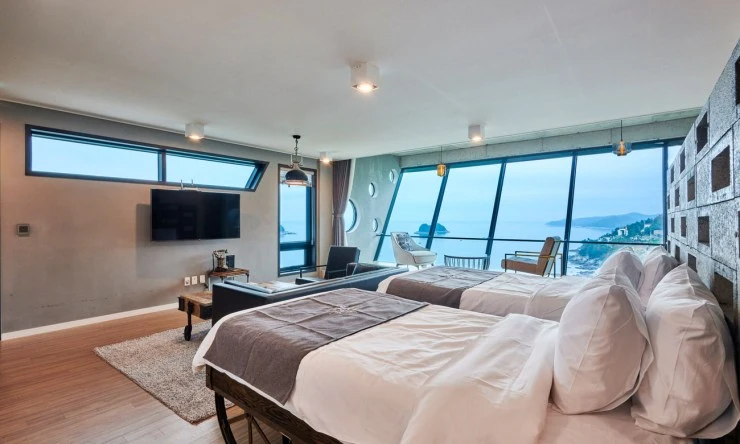 여수 예술랜드 리조트에는 앞서 소개드린 로얄 객실 외에도 슈페리얼/럭셔리/펜트하우스로 크게 객실이 나뉜다. 전 객실 오션뷰이며 감각적인 인테리어로 구성되어 있어 어디를 선택해도 후회는 없을 거다. 복층형 객실을 보유한 럭셔리 스위트룸, 단체 투숙객들을 위한 펜트하우스 룸 등 상황별로 선택해서 이용하시는 걸 추천하고 싶다!