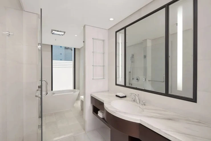 드라이기, 고데기, 칫솔, 치약, 샴푸, 컨디셔너, 바디워시, 반신욕 솔트 등 기본 세면도구가 제공된다. 네스프레소 캡슐 커피와 전기 포트, 생수가 있고 미니바에 주류도 판매한다. 욕실에 욕조가 있어서 반신욕을 즐기며 휴식을 취할 수 있다.