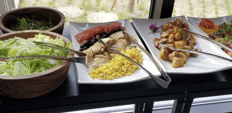 라테라스에서 7시 30분부터 9시 30분까지 조식을 먹을 수 있다. 해장국, 순두부, 곰탕 등 한식 혹은 베이커리& 샐러드 등 아메리칸 스타일 조식을 선택할 수 있다. 깔끔한 반찬과 국으로 아침을 든든하게 시작할 수 있다. 테라스에서 커피 마시며 푸릇한 전경을 보며 휴식을 취해보자.