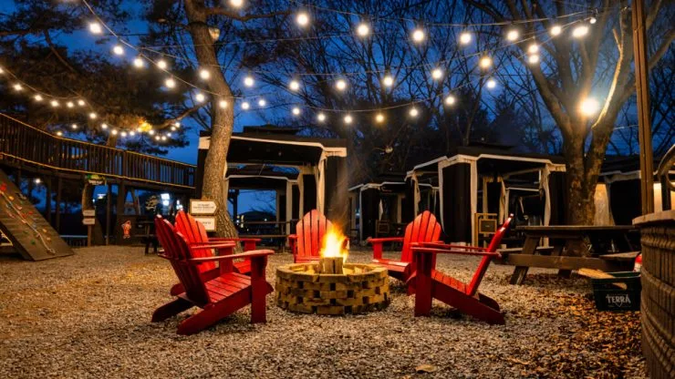 1층에 카페가 있어서 입실하기 전에 여유롭게 쉴 수 있다. 기념품도 판매하고 있다. 밖에 트리하우스와 모래 놀이터가 있어 아이들과 함께 머물기에도 좋은데, 지리산 흑돼지 BBQ를 구워 먹을 수 있는 실내외 공간, 고구마, 마시멜로를 구워 먹으며 멍하게 불을 볼 수 있는 감성 불멍존, 편의점, 오락실 등 부대시설도 있다.