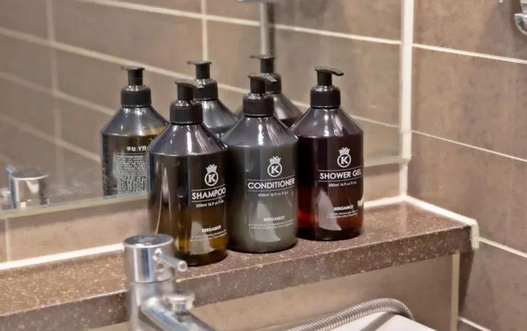 물, 티, 인스턴트커피, 샴푸, 컨디셔너, 바디워시, 로션, 빗, 샤워캡, 비누, 수건 등 기본 어메니티가 제공된다. 칫솔, 치약, 면도기는 없으니 개인 세면도구와 함께 챙겨야 한다. 욕조가 있는 객실에서 반신욕도 즐길 수 있다.