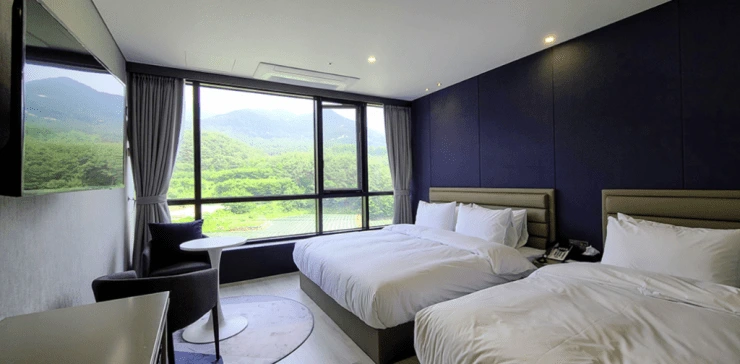 지리산 둘레길 코스와 오헤브데이와 연결되어 있어서 등산객이 많이 머무는 호텔이다. 창문 밖으로 지리산이 보인다. 침구류는 푹신하고 깔끔하다. 작은 테이블에서 간단한 간식을 먹으며 tv를 보기에도 좋다. 아늑하고 쾌적하게 쉬어가기 좋은 곳이다.