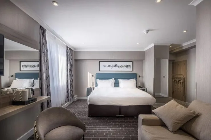 침대와 미니바, 욕실로 객실은 구성돼 있으며, 차의 나라 영국답게 미니바에 다양한 티가 준비돼 있다. 침대에 누워서는 HD TV도 시청할 수 있다. 객실에 따라 창문이 없을 수도 있다. 환기에 민감하다면 입실 시 미리 체크하는 것을 추천한다.