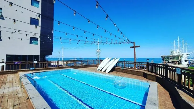 바비큐장은 실내에 마련되어 있으며 자이글 비용은 무료다. 야외 수영장은 6월 중순~9월 중순까지 이용할 수 있다. 펜션에는 오션 라운지, 안마의자, 커피 머신 등이 있다. 펜션 방문과 함께 인근 헌화로를 따라 오션뷰 드라이브를 즐겨보자!