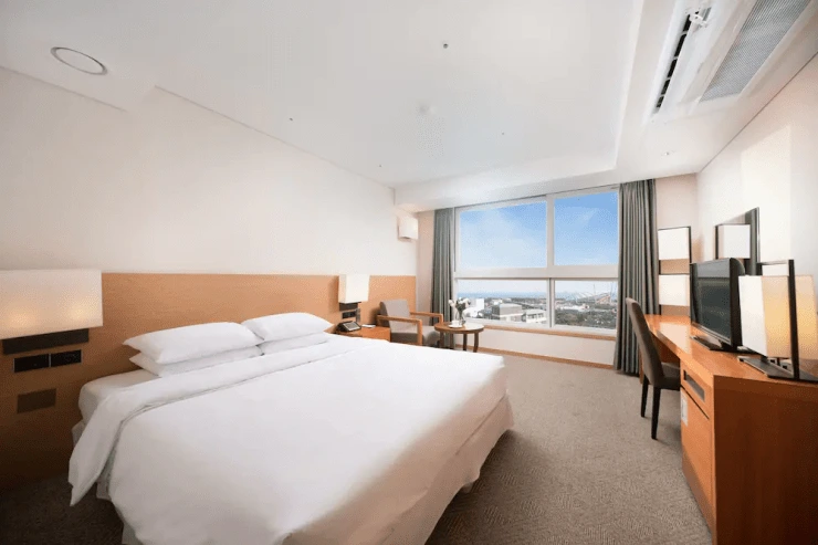 객실 타입은 스탠다드와 디럭스, 프리미엄, 온돌룸, 패밀리 오션 스위트, 로열 오션 스위트 등으로 나뉜다. 올스테이에서는 10만 원 이하부터 예약할 수 있다. 커플 여행자에게는 여유로운 공간이 인상적인 디럭스 더블 룸을 추천한다. 바다 전망 객실도 선택 가능하다. TV와 냉장고, 티 테이블 등을 갖췄다.