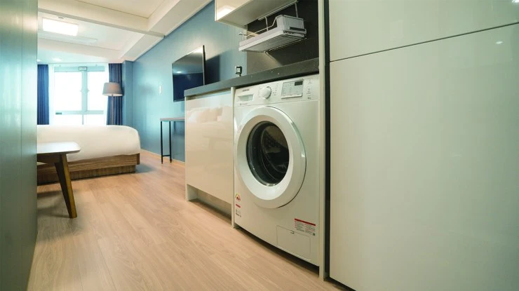 속초 마리나베이 호텔은 레지던스 호텔이다 보니 객실 내 인덕션과 세탁기가 구비되어 있다! 다만 취사는 불가능하여 인덕션 이용은 불가능하지만 세탁기는 얼마든지 이용 가능하다! 특히나 수영장 이용하시는 분들의 경우 탈수 등 세탁기 이용하면 더욱 편리할 거다.