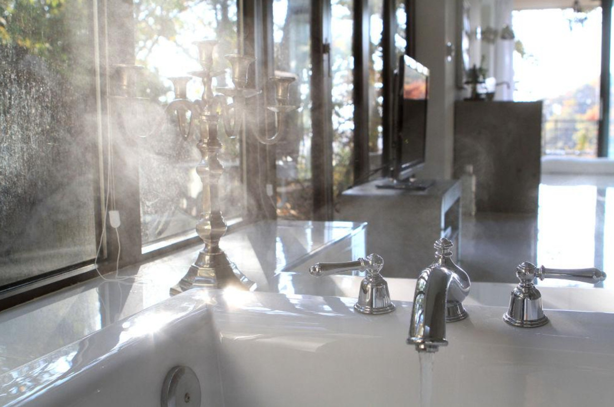 스파 욕조는 침실과 이어져 있으니, 자연을 바라보며 스파를 즐겨보자! 스파 욕조 외에 화장실과 샤워부스가 별도로 마련되어 있다. 어메니티로는 샴푸, 헤어 컨디셔너, 바디워시, 바디로션 등이 준비된다.