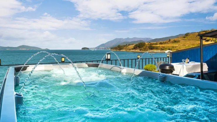 그뿐만이 아니라 수영장 제트 스파가 건물 옥상에 설치되어 있어 바다를 보며 물놀이를 즐길 수 있다. 다양한 색의 조명과 냉온수로 가능해, 남해 오션뷰를 배경으로 멋진 인생 사진을 남길 수 있다! 체크인은 오후 15시부터 가능하며, 체크아웃은 오전 11시까지 마무리하면 된다.