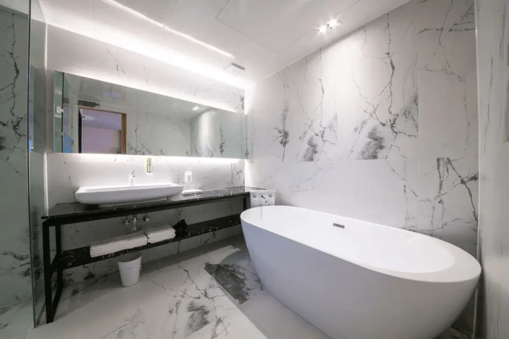 욕실에는 샴푸와 린스, 바디워시 겸용으로 쓸 수 있는 어메니티가 디스펜서 형태로 부착돼 있다. 개인 위생용품으로는 칫솔과 치약, 쉐이빙 키트, 면봉, 고무줄, 샤워 타올 등이 제공된다. 세안제 정도만 챙겨 오면 된다.