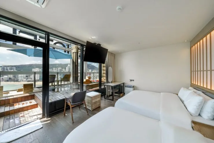 커플과 가족 여행자에게 두루 인기인 객실이다. 전체 21평형 크기로 침실과 주방, 욕실, 테라스 등으로 구성됐다. 객실에는 더블 베드와 에어컨, TV, 스타일러 등을 갖췄다. 테라스 밖으로 나가면 오션뷰와 함께 히노키탕에서 족욕과 반신욕을 즐길 수 있다.