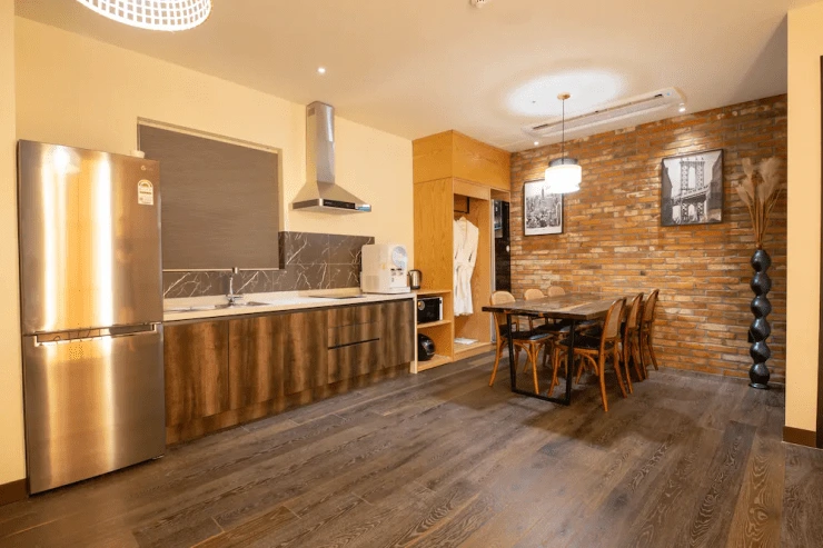 취사 가능한 덕분에 부산 더베이클럽호텔 객실은 파티룸으로도 사랑 받고 있다. 주방에는 인덕션과 전기밥솥, 전자레인지, 정수기, 커피포트, 대형 냉장고, 식기 세트, 와인잔 등을 구비했다. 공기 청정기를 설치해 놔, 냄새 걱정도 없다.
