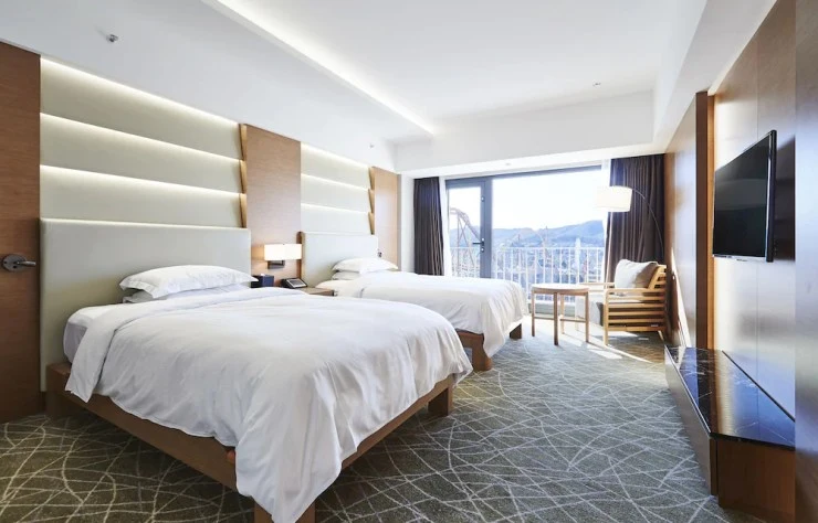 디럭스룸(더블, 트윈, 패밀리, 투 킹 베드, 패밀리, 온돌), 스위트룸, 이그제큐티브 룸, 이그제큐티브 라운지가 있다. 가족, 친구, 연인에 따라 객실은 선택하시면 돼요. 전 객실 모두 쾌적하고 퀄리티 좋은 침구류가 제공된다.