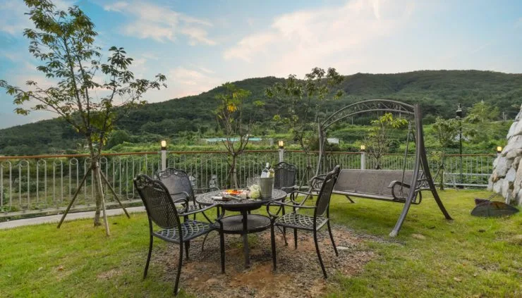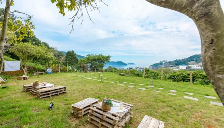 프래밀리 풀빌라에서는 오션뷰 피크닉도 즐길 수 있다. 피크닉 카페에서 준비한 예쁜 소품으로 여유로운 티타임을 가져보자. 1세트 1시간 기준 5,000원으로 이용 요금도 저렴하다.