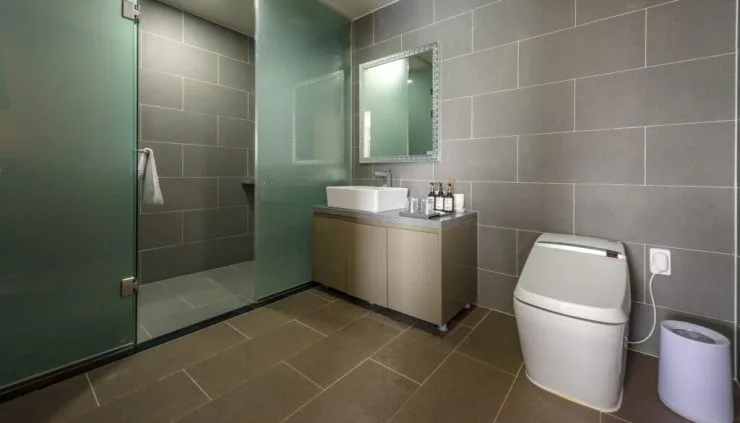 화장실도 1층과 2층에 하나씩 준비돼 있어 편리하게 이용할 수 있다. 어메니티는 샴푸, 컨디셔너, 바디워시, 비누가 구비돼 있으며, 풀빌라인 만큼 수건도 넉넉히 갖춰져 있다. 환경보호를 위해 칫솔, 치약, 면도기는 제공되지 않는다. 필요시 호텔 내 매점에서 구매할 수 있다.