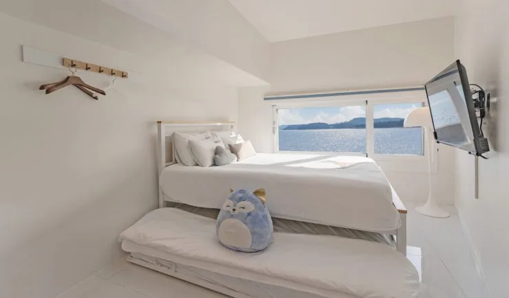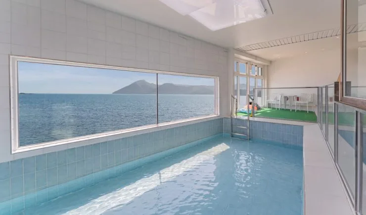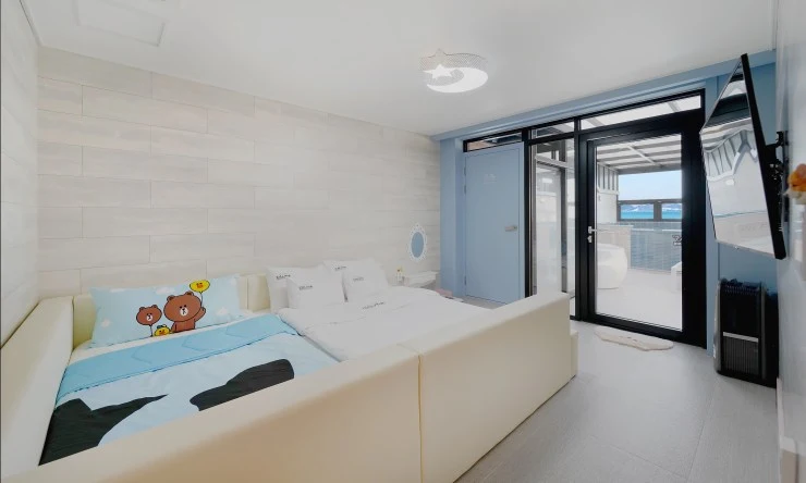 객실은 복층 구조로 1층은 생활공간, 2층은 수영장으로 구성돼 있다. 깔끔하고 세련된 인테리어는 보기만 해도 기분이 좋아진다. 바다가 바로 앞이라 어디에서나 오션뷰도 감상할 수 있다. 1층과 2층 사이에는 아이들을 위한 놀이터가 숨어 있다. 아늑한 다락방에는 장난감이 가득하다. 수영장에는 구명조끼와 튜브도 준비돼 있다. 같은 층에 화장실이 있어 물놀이 후 씻기에도 좋은 가족 풀빌라이다.