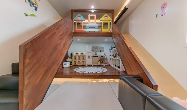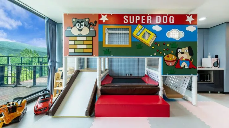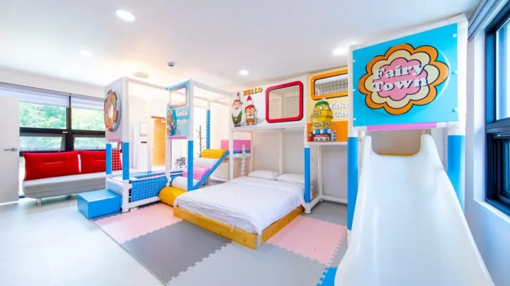 피유키즈풀빌라는 로얄, 화이트, 그레이 3가지 타입을 보유하고 있다. 4인 가족이라면 화이트나 그레이를, 대가족이라면 로얄 객실을 추천하고 싶다. 모든 객실에는 실내 놀이터도 설치돼 있다. 아이들이 좋아하는 귀여운 캐릭터 인테리어가 눈길을 끄는데, 가족 풀빌라에는 개별 수영장도 준비돼 있다. 미온수는 하루 전까지 사전 예약 필수다! 1박 기준 50,000원의 요금이 부과된다.