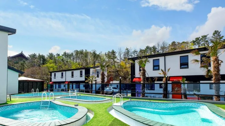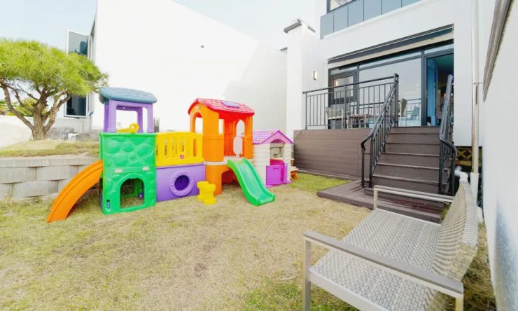 네 번째로 추천할 가족 풀빌라는 ‘포항 피유키즈풀빌라’이다. 피유키즈풀빌라에서는 동화 속 마을에 들어온 듯 아기자기한 감성을 느낄 수 있다. 숙소는 야외 풀, 인조 계곡, 식당 등의 부대시설도 운영하고 있다. 야외 풀은 아이와 이용하기 좋은 낮은 수심이다. 포토존도 있어 가족사진을 남기기에도 좋다. 포항의 절경인 일출 명소도 숙소와 가까우니 들러보자!