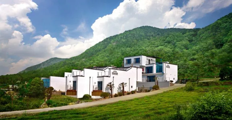 세 번째로 추천하는 가족 풀빌라는 ‘가평 프리미엄키즈풀빌라’이다. 프리미엄키즈풀빌라는 높은 만족도를 자랑하는 숙소이다. 한국관광공사 한국관광 품질인증도 받아 믿고 갈 수 있다. 나는솔로 촬영지로 유명한 운악채 한옥마을도 근처라 고즈넉한 미를 느낄 수 있다. 울창한 마운틴뷰도 덤으로 챙겨갈 수 있다.