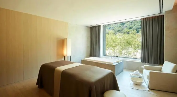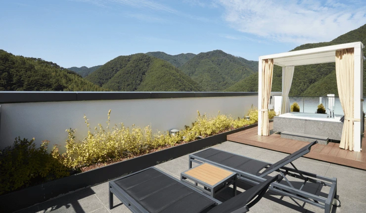 숙암 테라스 스위트 객실에는 테라스에 자쿠지가 있어 야외 스파를 이용할 수 있다.