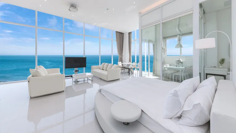 실제 펜션이 지어지는데 3년이 넘는 시간이 걸렸다고 한다. 디테일한 부분까지 세심히 신경을 썼다. 특히 객실은 화이트 인테리어를 통해 바다와 일체감을 주었다.