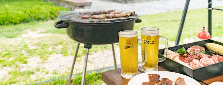 리조트에서는 야외 셀프 바비큐를 이용할 수 있다. 사전 예약이 필요하며 메뉴는 비비큐 플레이트 2개 중 선택 가능하다. 일반 텐트, 대형 텐트를 대여할 수 있다.